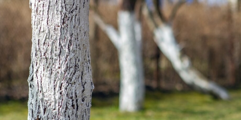Во избежании ожогов стволы деревьев белят. В идеале эту процедуру лучше проводить осенью.